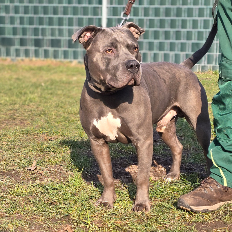 Rassetypisch kann der American Staffordshire Terrier sich innerhalb kurzer Zeit hochpushen, weswegen er Kuscheleinheiten lieber in Ruhe erhalten sollte. Auch bei der Leinenführung kann es etwas aufregend werden. Hier muss der junge Rüde noch ein bisschen was lernen, weshalb seine neuen Halter körperlich geeignet, sowie dazu bereit sein sollten, weiter an seiner Erziehung zu arbeiten. Bei seinen Pflegern hat Boogie schon viel gelernt und weiß sich mittlerweile zu benehmen. Ob dies jedoch bei anderen Menschen auch gilt, testet er aus. Besonders Hundebegegnungen sind noch schwierig für ihn. Dabei neigt er zum Pöbeln und in die Leine springen. Boogie ist mit Hündinnen verträglich, allerdings sollten seine Spielkameradinnen ihm körperlich gewachsen sein, da sein Spielverhalten recht rüpelhaft ist. Andere Tiere sollten sich nicht im Haushalt befinden, Kinder hundeerfahren und mindestens 14 Jahre alt sein.